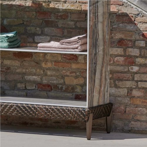 Консоль Laurus выполнена из керамики с отделкой под мрамор. Яркие поверхности, соблазнительные цвета и очень эмоциональные прожилки превращают керамику в настоящий предмет интерьера с отличными характеристиками для использования на открытом воздухе, такими как водостойкость, защита от УФ-лучей, водонепроницаемость, устойчивость к истиранию и пятнам. Посмотреть палитру материалов Samuele Mazza.