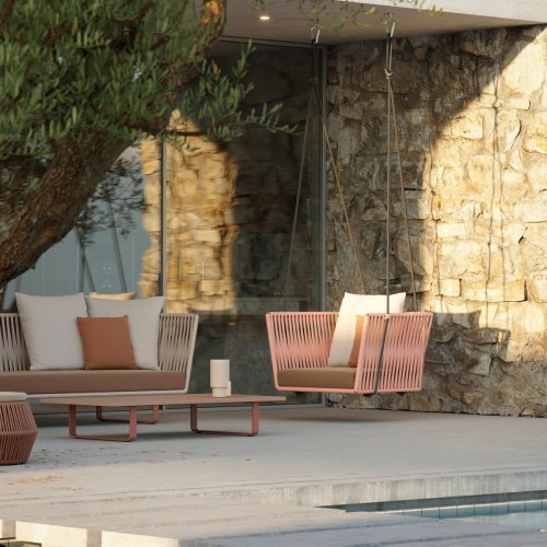 Кресло-качели Bitta характеризуется сочетанием алюминиевой рамы, канатов из плетеного полиэстера и удобных подушек. Как утверждает дизайнер, - "Моя цель состояла в том, чтобы создать плотную оплетку, которая бы все еще пропускала воздух, напоминающую плетение используемых канатов для швартования лодок (отсюда и название Bitta, что в переводе с итальянского означает «швартовка»), благодаря чему детали выглядят легкими, но в то же время они выглядят как уютные гнезда в естественных цветах, для отдыха и расслабленного времяпрепровождения."