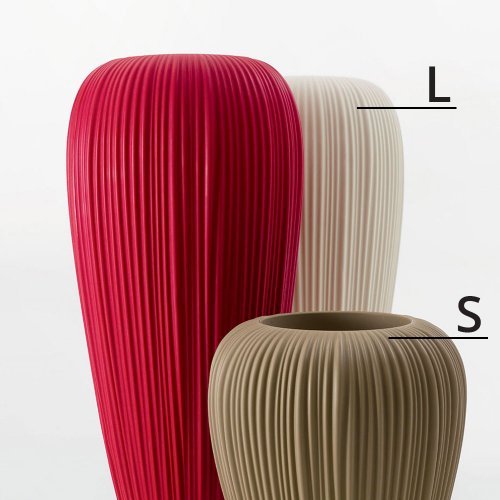 Кашпо изготовлены из материала Polyeasy - новый пластиковый материал, запатентованный фабрикой Myyour. Он представляет собой линейный полиэтилен, в котором практически отсутствует поверхностная микропористость. Прочный, долговечный, моющийся материал, поверхность которого остается блестящей, а цвета - яркими с течением времени.