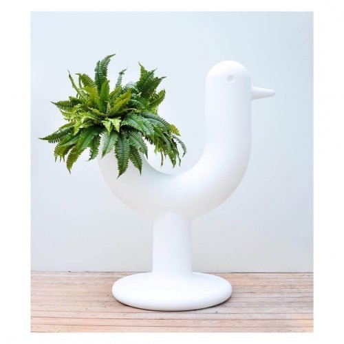 Павлины в зоопарке очаровали и испугали Eero, потому что, когда они раздували хвосты, они становились больше него. Такие воспоминания являются источником вдохновения для создания этого нового кашпо с большим символизмом для Eero, который, естественно, назвал его Peacock (павлин), что привело к воссоединению с этой фигурой с детства.
