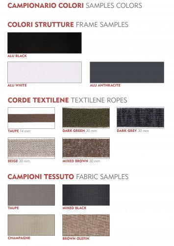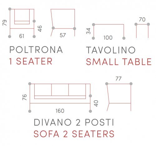 Комплект Panama состоит из двухместного дивана, двух кресел и журнального столика. Устойчивый и надежный каркас из алюминия кресел и дивана оплетен текстиленовым и резиновым канатом. Подушки из текстилена обеспечивают дополнительный комфорт. Журнальный столик выполнен из алюминия. Стильный и удобный комплект можно разместить в зоне отдыха в помещении или на открытом воздухе.
