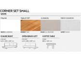 - Цветовое решение комплекта: каркас: белый, столешница: тик, подушки: хаки.