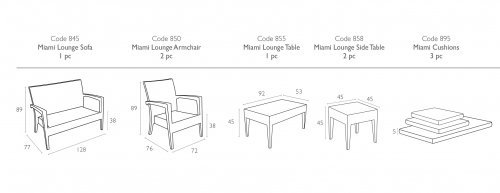 Комплект пластиковой плетеной мебели Miami Lounge изготовлен из прочного погодостойкого пластика, армированного стекловолокном.
