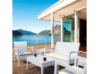 Комплект пластиковой плетеной мебели Miami Lounge изготовлен из прочного погодостойкого пластика, армированного стекловолокном.