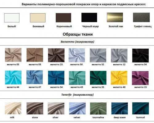 - Варианты отделки каркаса и цвет обивки можно выбрать из палитры.