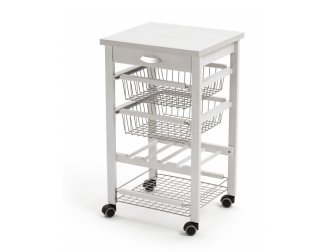 Кухонный островок на колёсиках Arturo от итальянской компании Arredamenti Italia (ARiT) сочетает в себе всё, что необходимо современной хозяйке. Он оборудован компактной столешницей, большим ящиком для столовых приборов, вместительными корзинами для продуктов, на которых есть особое порошковое покрытие, и специальной полкой для бутылок.