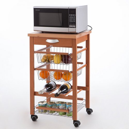 Этот миниатюрный островок сделан из натурального массива бука, а значит он невероятно прочный. Подвижные колёсики позволяют свободно перемещать его по всему дому. Благородный цвет "вишня" поможет вам создать интерьер в стиле Прованс, добавит лёгкости и элегантности в обстановку вашего дома.