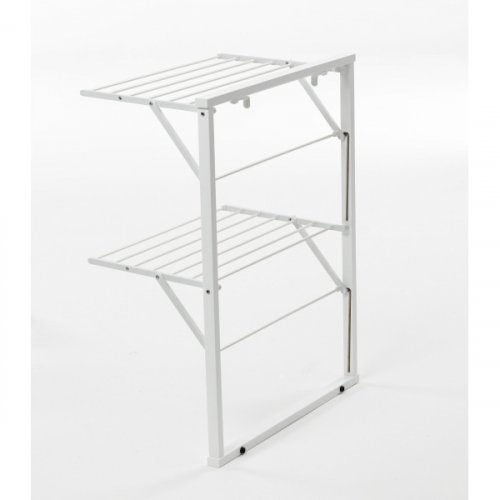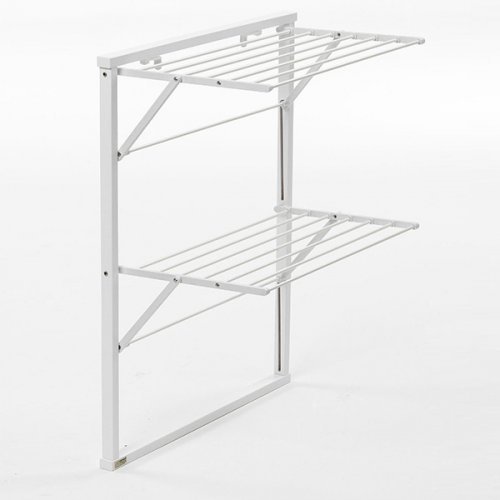 Каркас сушилки изготовлен из высокопрочной древесины бука, рейки же выполнены из лёгкого алюминия с порошковым напылением. Изделие без труда крепится к стене, не включены в комплект. Благодаря складной конструкции она занимает минимум места в сложенном состоянии. При необходимости её можно разложить, тогда её глубина составит всего 45 см. Преимуществом является то что одежда может высохнуть за гораздо более короткое время благодаря нагревательному эффекту радиатора.