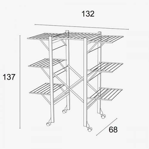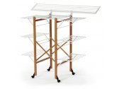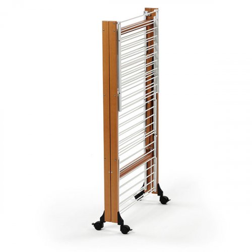 Каркас изделия изготовлен из высококачественного массива бука, а рамки и прутья - из лёгкого алюминия со специальным порошковым покрытием. Встроенные колёсики с функцией анти-след делают сушилку очень мобильной, но при этом не портят покрытие пола.
