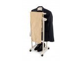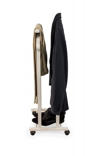 Встроенные колёсики с функцией анти-след делают вешалку очень мобильной. Её каркас изготовлен из прочного и долговечного массива бука. Белый универсальный цвет отлично впишется в различные интерьеры привнесёт нотки элегантности и экологичности.