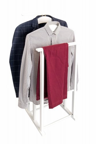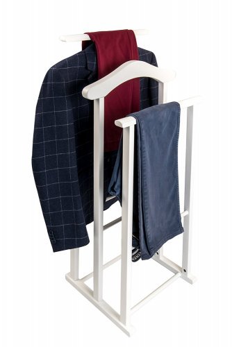 Встроенные колёсики с функцией анти-след делают вешалку очень мобильной. Её каркас изготовлен из прочного и долговечного массива бука. Белый цвет расставит необходимые акценты в интерьере и привнесёт в него нотки элегантности и экологичности.