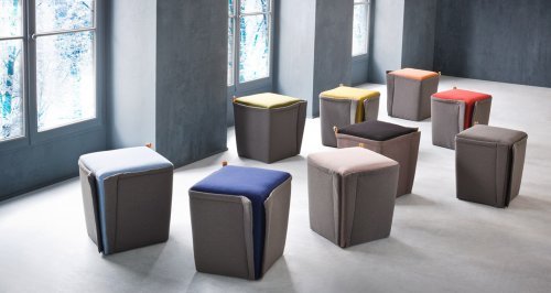 Съемное покрытие Finferlo дает возможность заменить, почистить или просто менять цвета пуфа. В углах пуфа два больших лацкана, подобно горловине куртки, указывают начальную точку двух петель, которые, сползая вниз по периметру объекта, позволяют снять покрытие или открыть ее достаточно просто, чтобы создать пространство для журналов или аксессуаров.