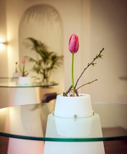 С Peak SLIDE предлагает эксцентричный яркий стол, спроектированный дизайнерами Aksu и Suardi. Peak с подстольем высотой 800 мм является идеальной моделью для общественных заведений и различных мероприятий: элегантность Peak возникает из его чрезвычайно линейного дизайна, с конусообразным полиэтиленовым основанием и круглой стеклянной столешницей. Особенностью столов Peak является центральное отделение для бутылок, которое делает их уникальными. Peak создает волшебную атмосферу благодаря тонкому свету, исходящему от подстолья.