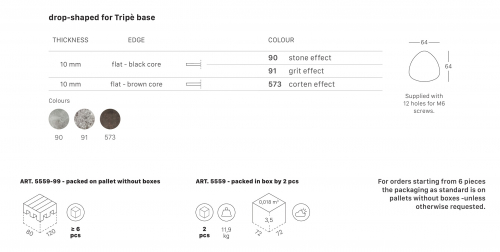 Столешница каплевидная, выполненная из компакт-ламината, подходит для подстольев Tripe.