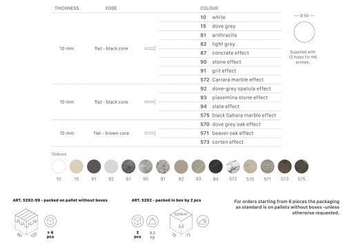 Столешница, выполненная из компакт-ламината, подходит для подстольев Nemo, Domino, Tiffany и Cross.