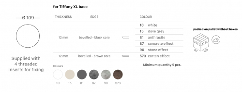 Столешница, выполненная из компакт-ламината, подходит для подстольев Tiffany XL.