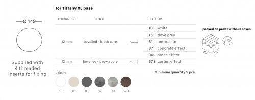 Столешница, выполненная из компакт-ламината, подходит для подстольев Tiffany XL.