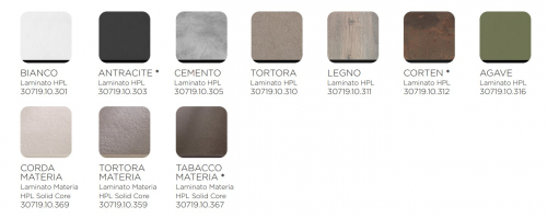 Столешницы Piano Laminato ø90 отличаются высокой прочностью, ламинированный слой защищает столешницу от различных возможных деформаций и химических воздействий на поверхность. Ламинированные столешницы имеют целый пакет характеристик: ударопрочный материал, защищающий от физических воздействий колющих, режущих и царапающих инструментов, слой ламината-пленки, защищающий поверхность от химических воздействий влаги, кофе, уксуса и других.
