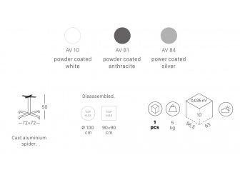 Столешница, выполненная из компакт-ламината, подходит для подстольев Nemo, Domino, Tiffany и Cross.