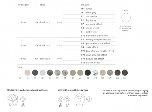 Столешница, выполненная из компакт-ламината, подходит для подстольев Nemo, Domino, Tiffany и Cross.