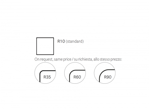Цена на сайте указана за модель размером 590х590 мм с плоским краем (COP) и радиусом углов R10. Для уточнения цены и всех возможных вариантов материала и цвета данного изделия обращайтесь к нашим менеджерам.