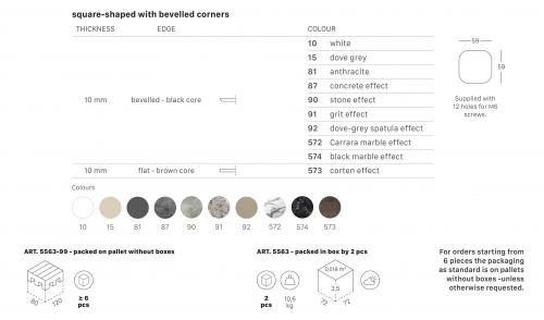 Квадратная столешница со скругленными углами, выполненная из компакт-ламината, подходит для подстольев Scab Design.