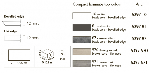 Прямоугольная столешница из компакт ламината для подстолья Metropolis с крестовиной 74 см. Толщина 12 мм - усиленная трубчатым стержнем.