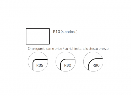 Цена на сайте указана за модель размером 1190х790 мм с плоским краем (COP) и радиусом углов R10. Для уточнения цены и всех возможных вариантов материала и цвета данного изделия обращайтесь к нашим менеджерам.