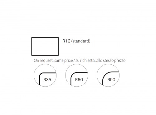 Цена на сайте указана за модель размером 1290х790 мм с плоским краем (COP) и радиусом углов R10. Для уточнения цены и всех возможных вариантов материала и цвета данного изделия обращайтесь к нашим менеджерам.
