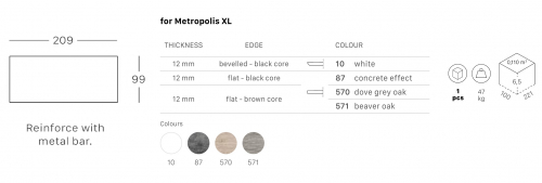 Столешница, выполненная из компакт-ламината, подходит для подстолья Metropolis XL.