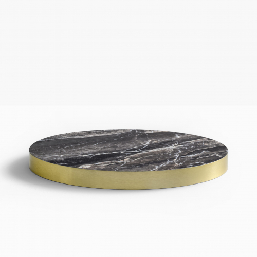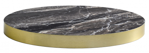 Современная итальянская дизайнерская столешница Laminate отличается своим стильным и благородным внешним видом. Уникальная ламинированная поверхность с эффектом мрамора и кромка латунного цвета из ABS-пластика делают ее отличным решением для создания престижных помещений различных назначений. Столешница прекрасно впишется в рестораны, кафе, залы ожидания и фудкорты.