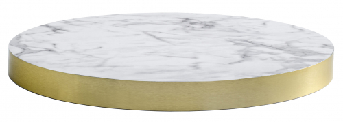 Современная итальянская дизайнерская столешница Laminate отличается своим стильным и благородным внешним видом. Уникальная ламинированная поверхность с эффектом мрамора и кромка латунного цвета из ABS-пластика делают ее отличным решением для создания престижных помещений различных назначений. Столешница прекрасно впишется в рестораны, кафе, залы ожидания и фудкорты.