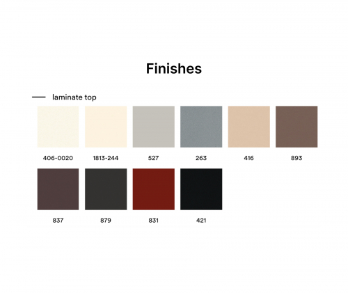 Прочная и простая в уходе столешница Laminate обладает отличительной изюминкой в виде рифленой алюминиевой кромки. Водонепроницаемая сердцевина и ламинированная поверхность делают ее отличным вариантом для общественных мест, таких как фудкорты, кафе, рестораны или бары. Широкий диапазон отделок поверхности, а также различные формы и размеры позволяют выбрать максимально подходящее изделие для разнообразных потребностей.