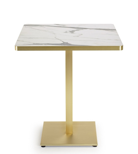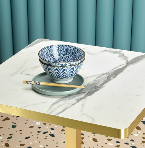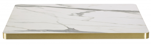 Столешница Tiffany с изысканной отделкой - образец классического дизайна. Ламинированная столешница с сердечником из ЛДСП, отделкой под черный или белый мрамор и плоской кромкой из пластика ABS латунного цвета. Модель Tiffany придаст элегантность интерьеру любого заведения.
