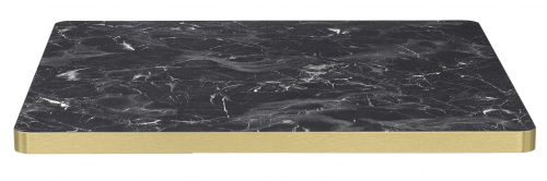 Столешница Tiffany с изысканной отделкой - образец классического дизайна. Ламинированная столешница с сердечником из ЛДСП, отделкой под черный или белый мрамор и плоской кромкой из пластика ABS латунного цвета. Модель Tiffany придаст элегантность интерьеру любого заведения.