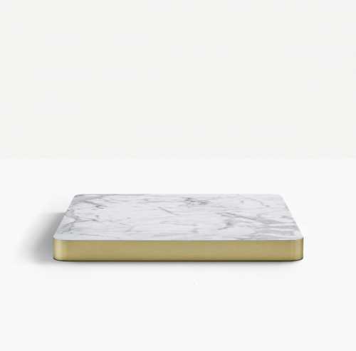 Современная итальянская дизайнерская столешница Laminate отличается своим стильным и благородным внешним видом. Уникальная ламинированная поверхность с эффектом мрамора и кромка латунного цвета из ABS-пластика делают ее отличным решением для создания престижных помещений различных назначений. Столешница прекрасно впишется в рестораны, кафе, залы ожидания и фудкорты.