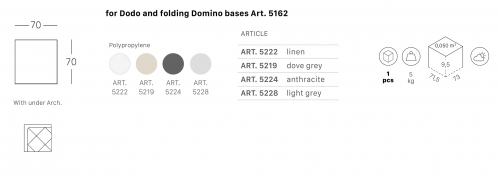 Столешница изготовлена из технополимера размером 700х700 мм и подходит для подстольев Dodo (арт. 5200) и складных подстольев Domino (арт. 5162).