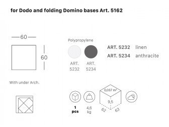 Столешница изготовлена из гладкого технополимера размером 700х700 мм и подходит для подстольев Dodo (арт. 5200) и складных подстольев Domino (арт. 5162).