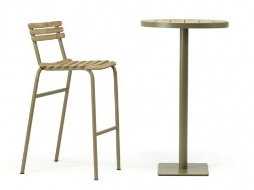 Столь же любимая в частных домах, как и в общественных местах, коллекция Laren пополнилась новыми изделиями из маринованного и натурального тика, а также окрашенного металла: барные столы разных размеров, барные и обеденные стулья, кресла.