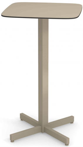 Материал столешницы: HPL - материал, подходящий для наружного использования. Он состоит из слоев крафт-бумаги, пропитанных фенольными смолами, и декоративного поверхностного слоя, пропитанного термореактивными смолами. Эти слои прессуются при 9 Мп и при температуре 150 градусов по Цельсию.