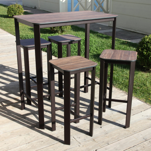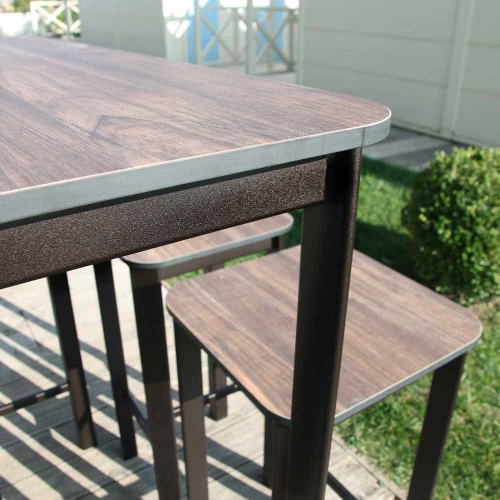 Барная линейка Horeca из коллекции Open Air, состоящая из квадратного и прямоугольного барных столов и табуретов, сочетает в себе прочность и превосходную устойчивость к непогоде и солнечному свету, не забывая при этом об эстетическом аспекте, обогащенном элегантностью столешницы и сидений с отделкой под дерево. Дизайн Horeca отличается простыми линиями и геометричными формами, способен дополнить уличное пространство, сделав его современным и авангардным.