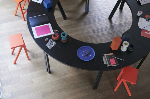 Bureaurama - это коллекция легких табуретов (высокого, среднего и низкого) и столов, которые можно разместить для создания рабочей или повседневной атмосферы, где они будут отлично смотреться: дома, на складе или в офисе, под деревом или в горах. Стол состоит из сварных алюминиевых профилей, окрашенных вручную с помощью распылителя. Серия Bureaurama призвана обеспечить пространство, в котором можно пересмотреть свое будущее, обсудить и принять решения, или просто расслабиться.