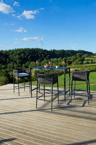 Стол выполнен из алюминия с порошковым покрытием. Выбор алюминия в качестве основного материала обеспечивает лёгкость, устойчивость к погодным условиям и минимальные требования к уходу, что делает мебель идеальным выбором для тех, кто ищет высококачественную и долговечную садовую мебель.