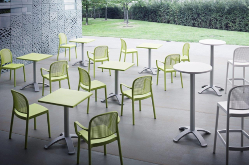 Коллекция Tkitt - столы, которые подходят для использования на открытом воздухе. Столешницы выполнены из технополимера в разных формах и размерах, которые комбинируются с основанием из металл-технополимера и колонной из анодированного алюминия. Металлические столы надежны, прочные, имеют привлекательный внешний вид. Специальное эпоксидное порошковое покрытие порошка используется во многих изделиях Gaber®, благодаря чему достигается превосходная стойкость к атмосферным воздействиям.