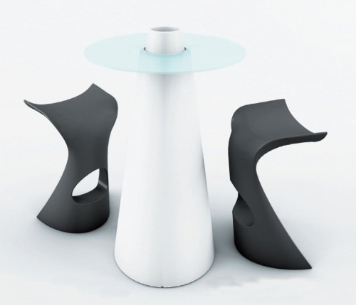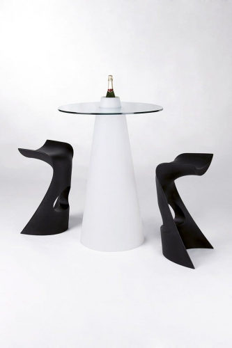 С Peak SLIDE предлагает эксцентричный яркий стол, спроектированный дизайнерами Aksu и Suardi. Peak с подстольем высотой 1200 мм является идеальной моделью для общественных заведений и различных мероприятий: элегантность Peak возникает из его чрезвычайно линейного дизайна, с конусообразным полиэтиленовым основанием и круглой стеклянной столешницей. Особенностью столов Peak является центральное отделение для бутылок, которое делает их уникальными. Peak создает волшебную атмосферу благодаря тонкому свету, исходящему от подстолья.