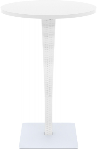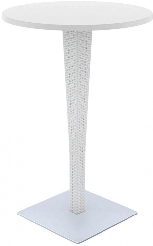 Барный пластиковый плетеный стол Riva выполнен из нескольких материалов: основание из окрашенного алюминия, колонна - из плетеного пластика, столешница - из верзалита.
