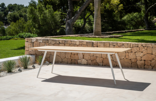Филигранная серия Amazone привлекает внимание своим легким дизайном. Сочетание алюминия и тика идеально подходит для создания уютных обеденных зон на открытом пространстве. Стол прекрасно сочетается со всеми обеденными креслами и стульями Jati & Kebon.