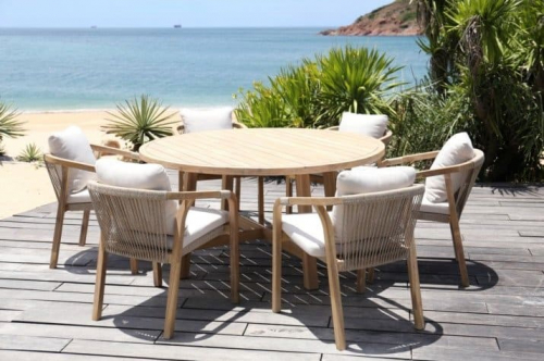 Обеденный стол Rimini изготовлен из древесины тропической АКАЦИИ (FSC), которая хорошо устойчива к атмосферным воздействиям. Цвет этой натуральной твердой древесины представляет собой натуральный цвет с мелкой текстурой, придающий древесине приятный теплый вид. Rimini - это стиль и элегантность на Вашей веранде.