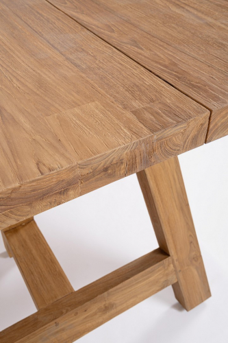 Обеденный стол Managua - это сочетание природной красоты и экологической ответственности. Его столешница и ножки изготовлены из переработанного тика. Рустикальная отделка подчеркивает уникальность текстуры древесины. Штифты из различных пород дерева, используемые в столешнице, придают ей еще большую индивидуальность.