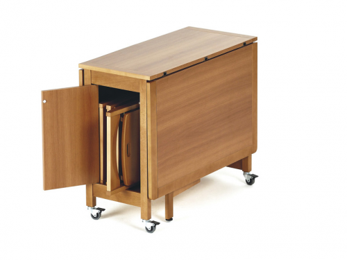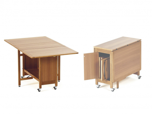 Идея раскладного стола не нова: он занимает мало места в сложенном виде, но позволяет усадить довольно много гостей в случае необходимости. Раскладной стол Indaco от итальянской компании Arredamenti Italia (ARiT) не стал исключением. Он целиком изготовлен из высокопрочного массива бука, что гарантирует его надёжность и долговечность. Его регулируемые ножки и поворотная столешница делают его очень удобным в эксплуатации. Встроенные колёсики со стопорным механизмом позволяют без труда перемещать и фиксировать его там, где вам нужно.